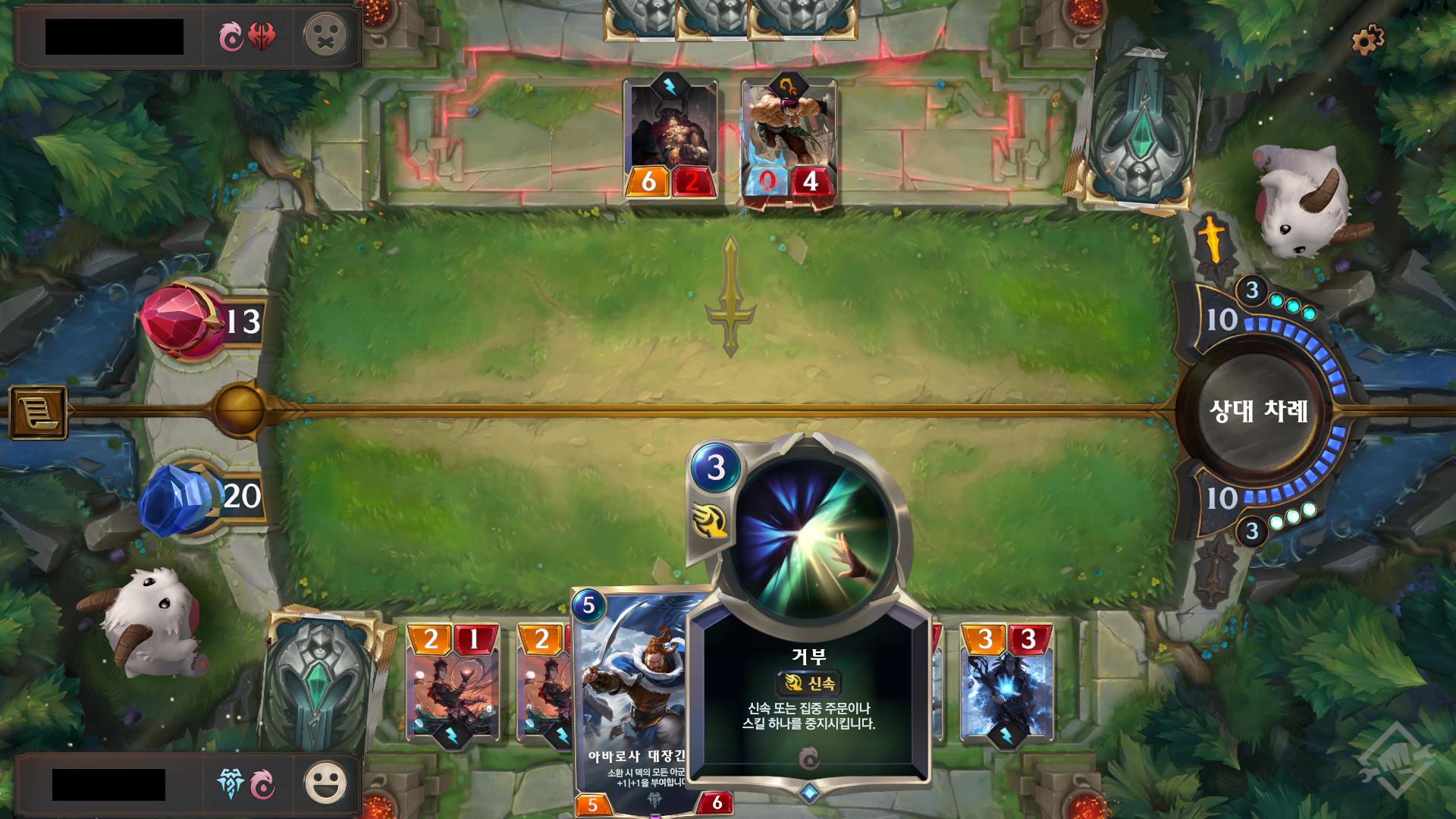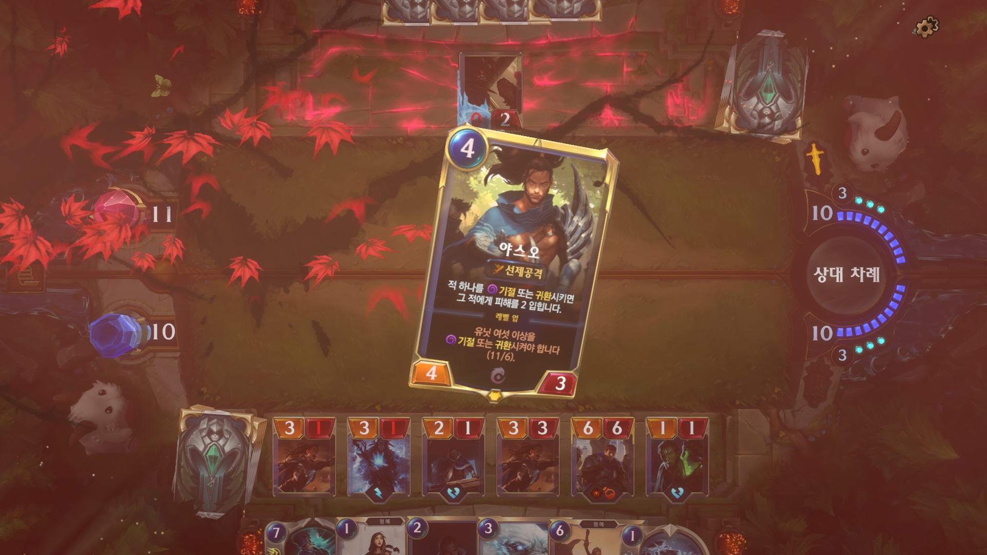전체 체력이 비교적 적은 거나, 낼 수 있는 카드가 없을 때 자동으로 턴 넘어가는 모습에서 알 수 있듯이